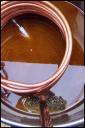 I’ve been trying to think of a way to filter my wort from the kettle before it reaches the carboy. The biggest issue I have is with my pellet hops, especially in a hoppy beer like an IPA. With whole leaf hops when used in conjunction with a false bottom they form their own filter bed and the wort runs very clear. With pellet hops they are broken up into iddy-biddy pieces and are very difficult to restrain. I used to use nylon bags to put the hops in but this lowers their effective rate – clearer wort but less efficient hop usage, more expensive plus it was never that clear. People have talked about using a stainless steel scrubby as a filter, but I have never been able to figure out a way to attach the scrubby to the back of the spigot. I use a Bazooka screen in my mash tun to filter the grain matter from the liquid, so recently I have been toying with the idea of buying one for the kettle and seeing how that works, but this hasn’t happened yet. So today I figured I give the scrubby method a shot. What I did to keep it in place instead of attaching it was to lower it down on the inside of the spigot post chilling the wort with my long stainless steel spoon and actually hold it in place with the spoon. I figured out a way to jam the spoon in between the lid, kettle wall, and wort chiller and it actually held itself. Surprisingly it seemed to work pretty well. Except for maybe the first and last quart or so it ran almost crystal clear and never seemed to slow or clog. I did lose some wort by using this method, about a half gallon, but I guess that would have been a pretty trubby half gallon anyway that would have basically fallen out of suspension. So it seems like a pretty neat idea that I will have to try again, though I still think I may order another Bazooka screen.